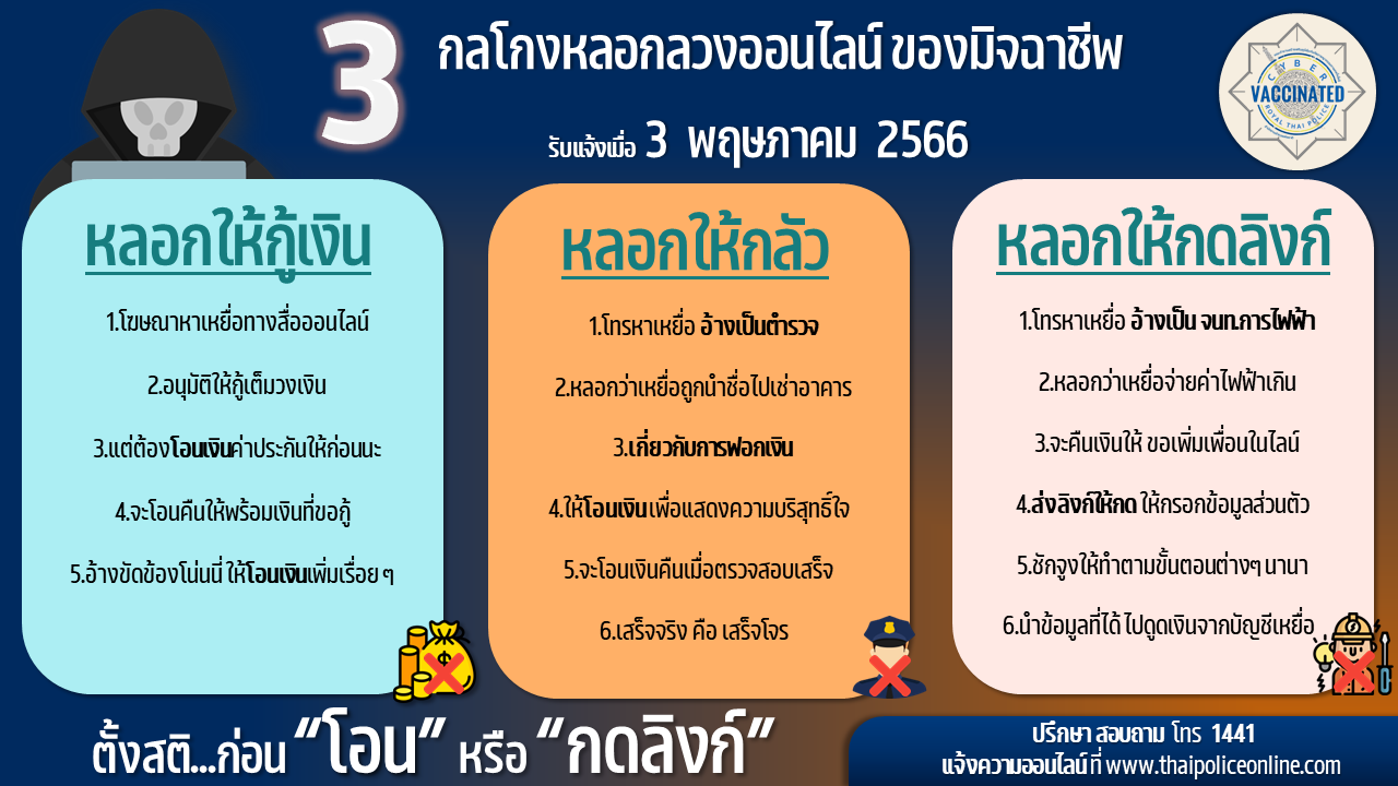 • ← เก่ากว่า ” 5 พฤติกรรมเสี่ยง ตกเป็นเหยื่อโจรออนไลน์”/”ขาย (หรือเปิด) บัญชีม้า ผิดกฎหมาย”/สรุปกลโกงของมิจฉาชีพ