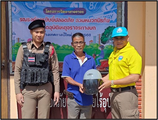 สภ.ทุ่งคาโงก ประชาสัมพันธ์ 6 อบรมให้ความรู้กฎจราจร และมอบหมวกนิรภัยตามโครงการจิตอาสาจราจรรณรงค์การขับขี่ปลอดภัย สวมหมวกนิรภัยเพื่อลดอุบัติเหตุจราจรทางบกในช่วงเทศกาลปีใหม่ พ.ศ.2568